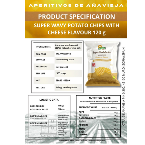 Super wavy potato chips bursting with natural cheese flavor and extra crunch. Their deep ridges lock in bold taste, making them a deliciously satisfying snack for cheese lovers.