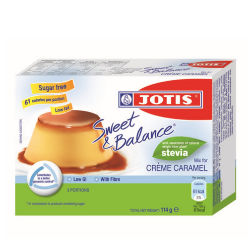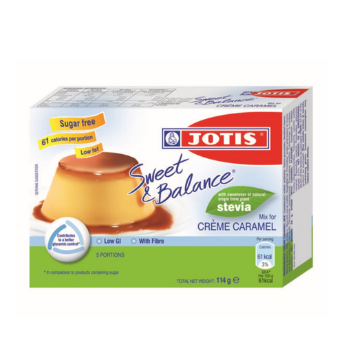 Sweet & Balance Crème Caramel instead of sugar contains extract of the stevia plant (steviol glycosides). It has natural sweet taste, zero caloric value and is not being metabolized by the human body. It maintains its sweetening properties during boiling and cooking. Finally, it is recognized by the competent scientific authorities and is completely safe.