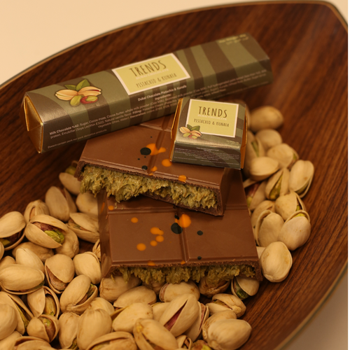 Trends' Pistachio and Kunafa-inspired chocolates offer a luxurious blend of flavors and textures. The Pistachio variety delivers a rich, nutty creaminess, while the Kunafa-inspired chocolate features crispy phyllo and soft cream filling, rooted in Middle Eastern tradition. These creations highlight Trends' dedication to crafting bold, unique confections that celebrate heritage with a modern twist.