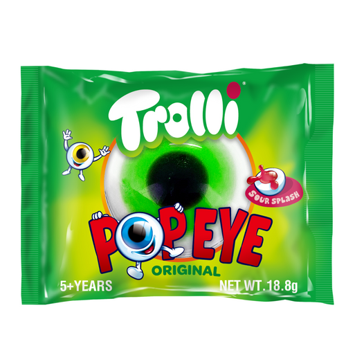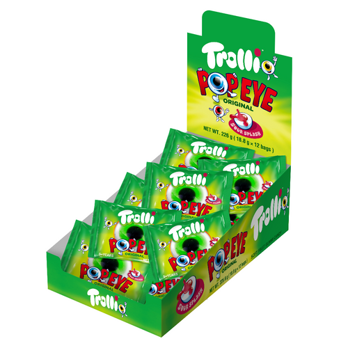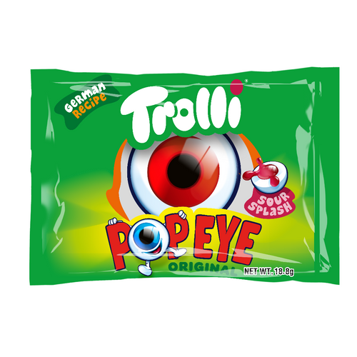 The unique look and incomparable taste with an unpectedly sour soft filling are sure to thrill fruit gummy fans everywhere. Trolli's Pop Eye: often imitated, never bettered.