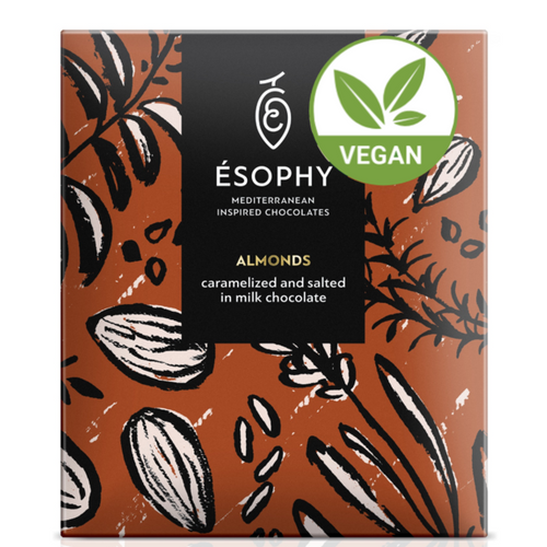 A plant-based indulgence inspired by Mediterranean abundance. Smooth and creamy vegan mylk chocolate envelopes crunchy caramelized almonds, creating a perfect balance of sweetness and texture. The roasted notes of the almonds harmonize beautifully with the mellow richness of the chocolate, offering a guilt-free treat that is both wholesome and deeply satisfying.