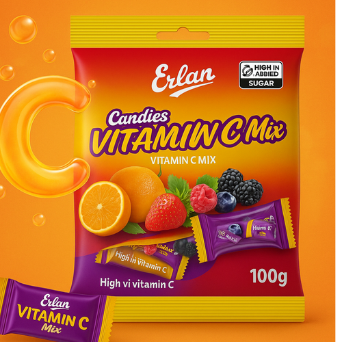 Erlan Vitamin C Hard Candy is a perfect combination of indulgence and wellness, developed for consumers who seek flavor, refreshment, and functional benefits in confectionery. This product delivers the delicious taste of fruit while providing an extra dose of Vitamin C, a nutrient widely recognized for its role in supporting immunity and overall health.