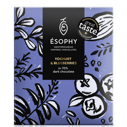 Inspired by the classic way that many Greeks enjoy the Greek yoghurt, as a dessert accompanied with fruits, we have embraced an alternative way to taste this fresh combination, in a exciting chocolate bar. Enjoy the creamy texture and the delicious sour taste of the authentic Greek yoghurt, balanced with the juicy pieces of blueberries.